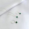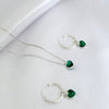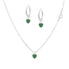 Conjunto Colar Veneziana 45cm e Brincos Argola Coração Verde Prata 925